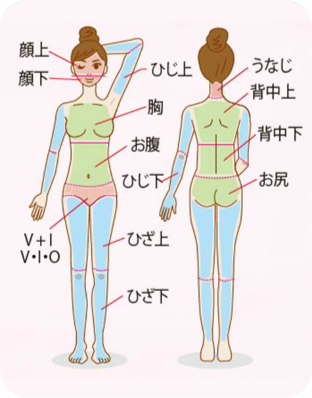 全身脱毛お時間1時間~1時間半。VIO・お顔全体込みの全身脱毛(サロンでのシェービング無し)